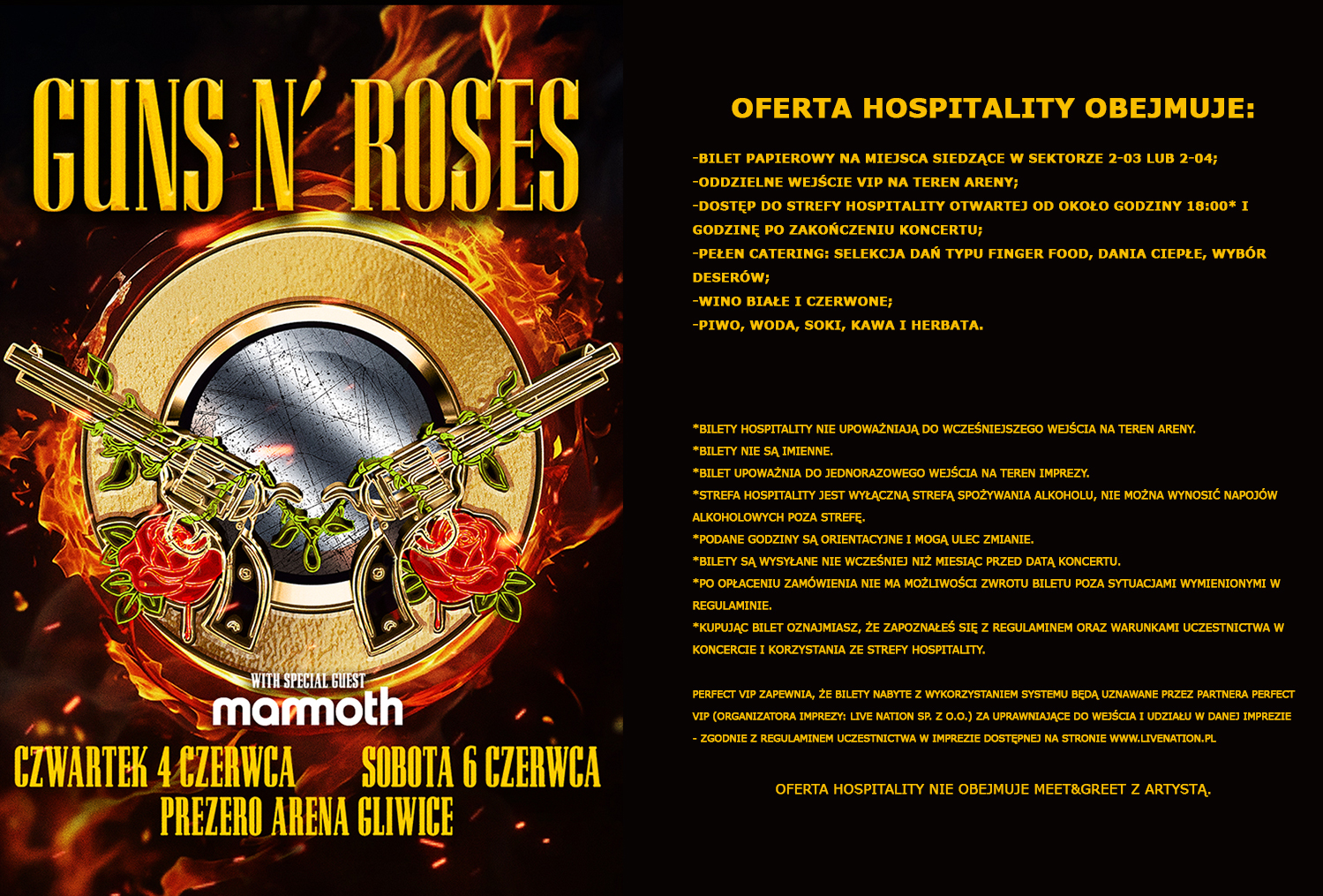 Dostępne są również bilety Hospitality na pierwszą datę koncertu Guns n' Roses 4 czerwca 2026