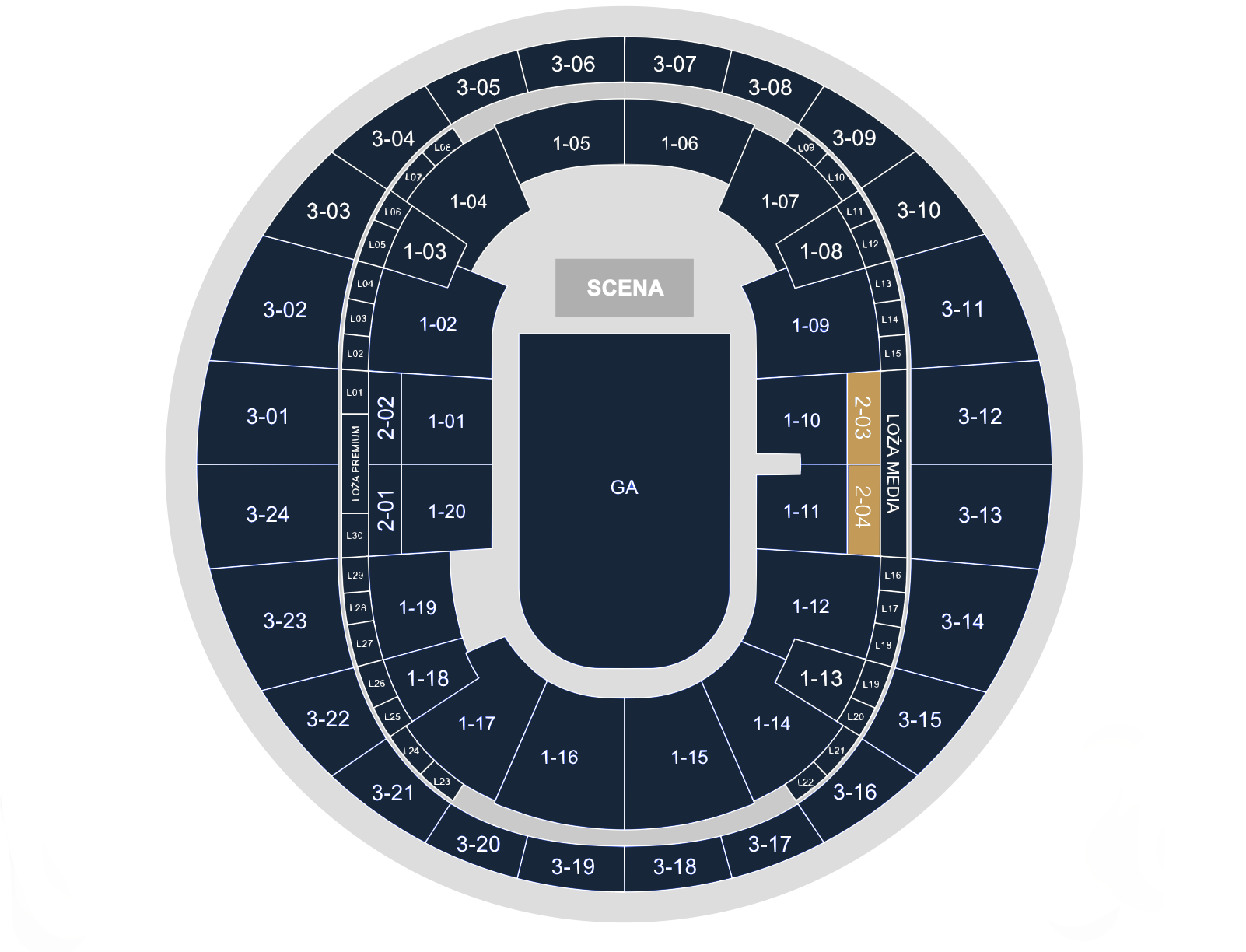 Mapa Areny z zaznaczonymi sektorami dostępna jest poniżej.