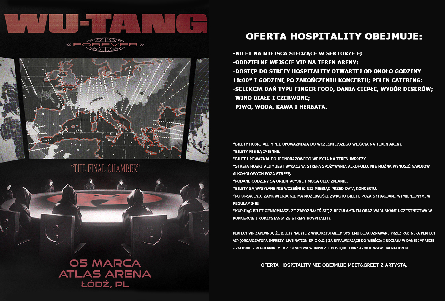 Perfect Vip zapewnia, że Bilety nabyte z wykorzystaniem Systemu będą uznawane przez partnera Perfect Vip (organizatora Imprezy: Live Nation sp. z o. o.) za uprawniające do wejścia i udziału w danej Imprezie - zgodnie z Regulaminem uczestnictwa w imprezie dostępnym na stronie www.livenation.pl.