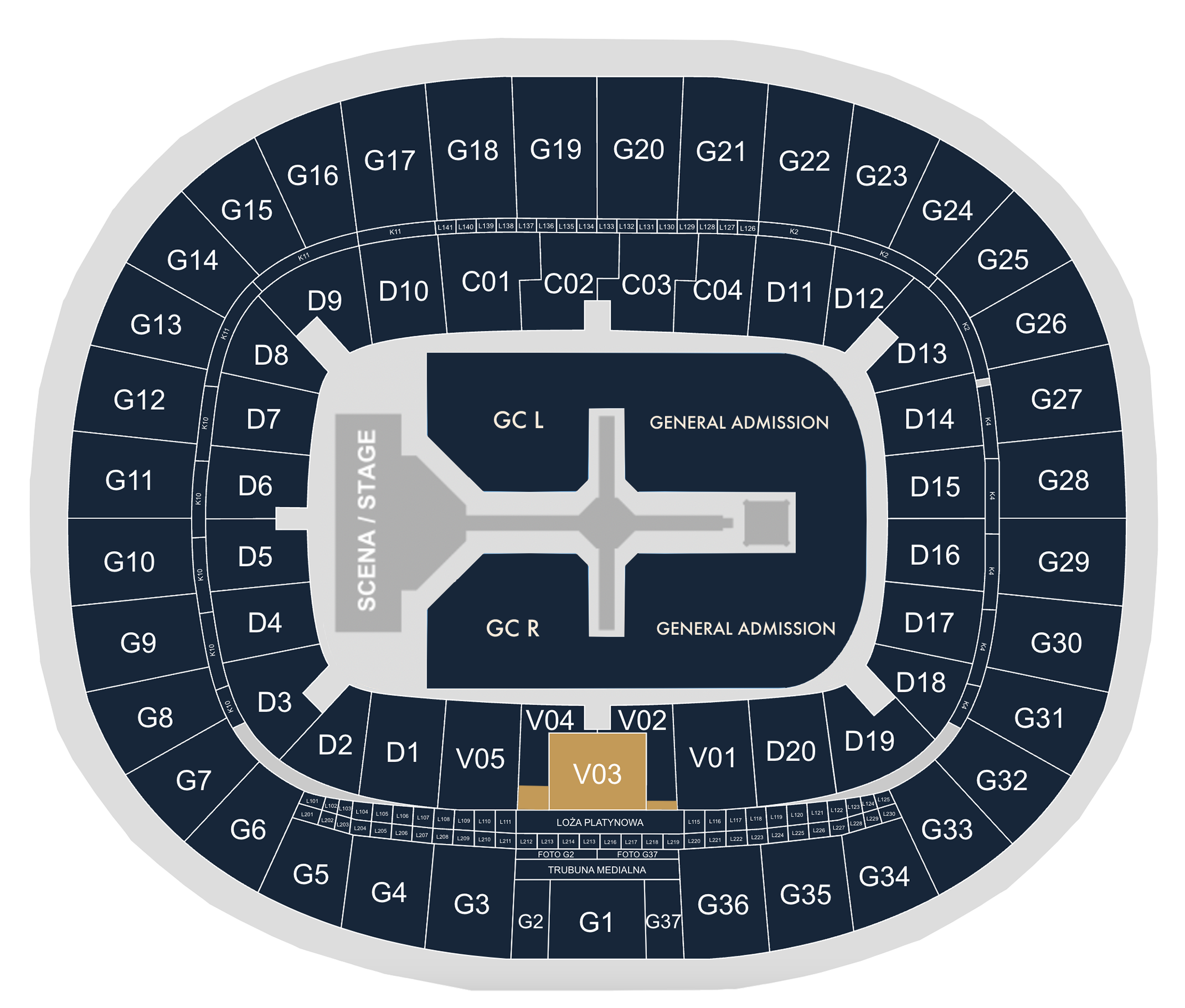 Miejsca przydzielane są zawsze obok siebie. Wybór konkretnych miejsc z planu sektora jest możliwy na indywidualne życzenie (office@perfectvip.pl)